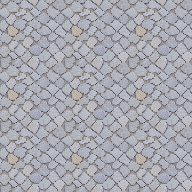 + cobblestone ground tile, seamless, top-down view, gray stones, green moss patches, small pebbles, flat lighting, Pixel Art, PixArFK
